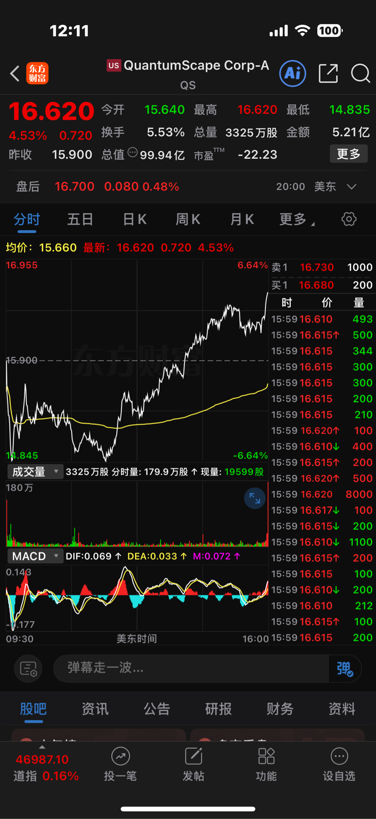 $先导智能(SZ300450)$ 昨晚美股行情很艰难但是QS固态电池屹立不倒还大涨4%多,虽然和先导智能关系不大,但是同行业可以看出美国对固态电池投资者的信心格局,更何况QS是先导智能的合作合伴有协议利益关系呢