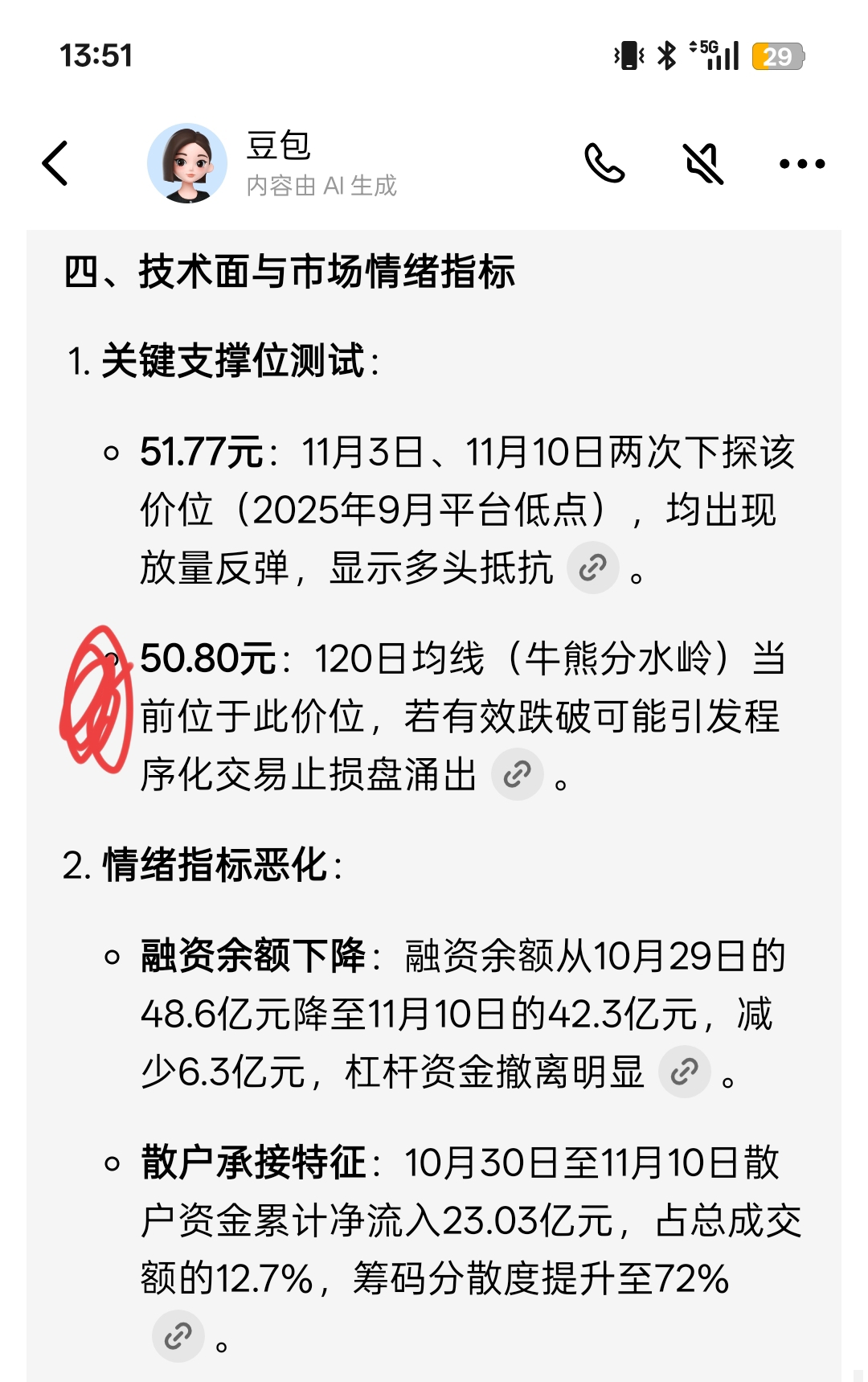 短期内仍面临H股发行定价及行业数据真空期的压制。若能在51.77元附近企稳,且H