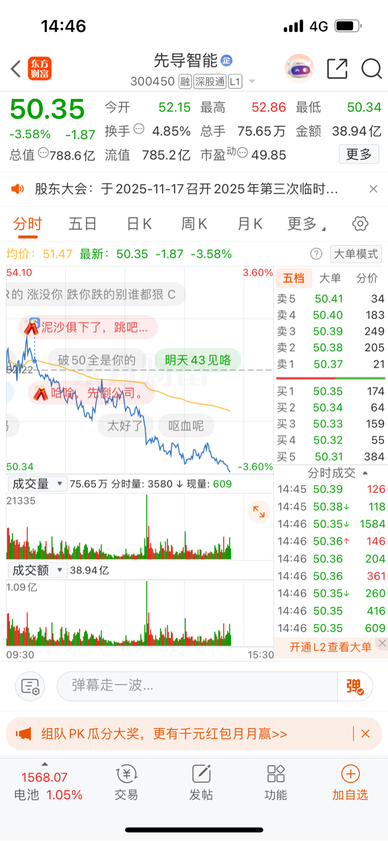 $先导智能(SZ300450)$ 还好早上跑得快,这家伙现在太弱了