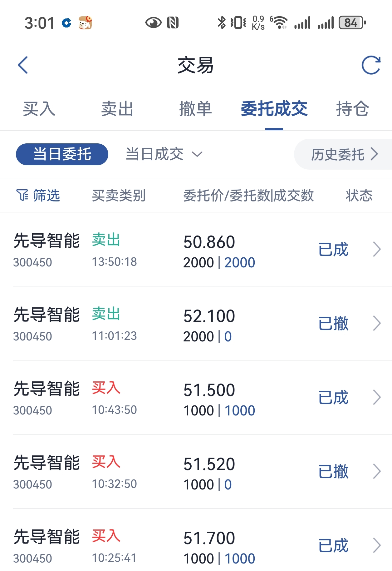 明天割肉!今天做反T了,中午之前小幅拉升一下,挂单52.10,最高52.08,稍
