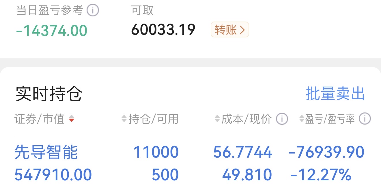 $先导智能(SZ300450)$ 从赚4万到亏8万,哎,同时选的天际多氟和你。争点气啊。