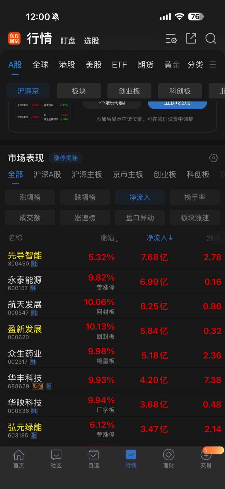 $先导智能(SZ300450)$ 上午全市场净流入最多