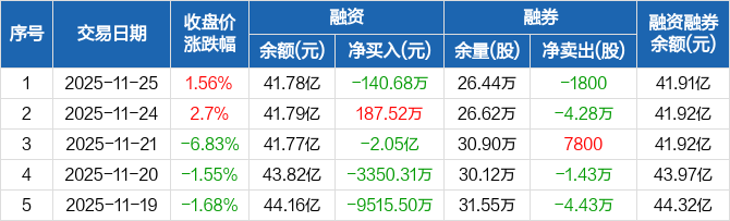先导智能:融资净偿还140.68万元,融资余额41.78亿元(11-25)