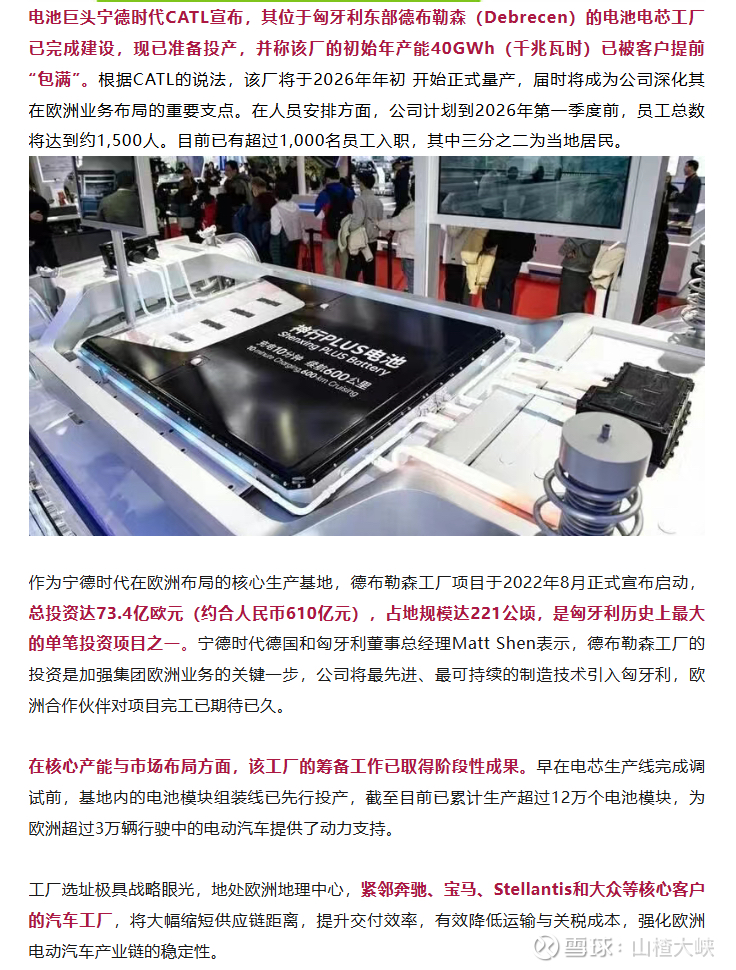 电池巨头宁德时代CATL宣布,其位于匈牙利东部德布勒森(Debrecen)的电池