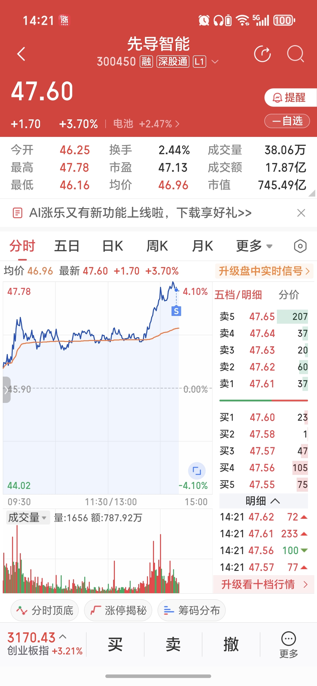 $先导智能(SZ300450)$ 昨天扫货今天出