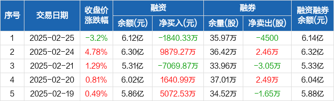 创业慧康:融资净偿还1840.33万元,融资余额6.12亿元(02-25)