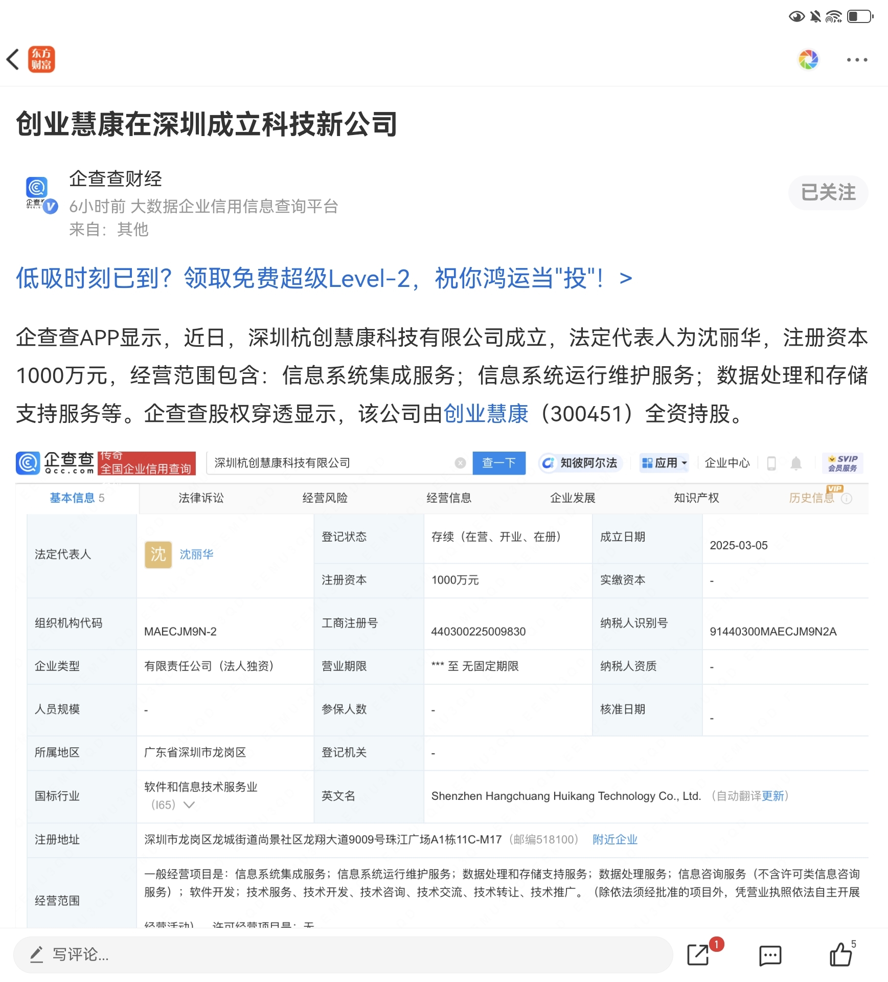 $创业慧康(SZ300451)$ 发力深圳?