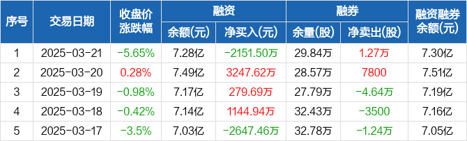 创业慧康:融资净偿还2151.5万元,融资余额7.28亿元(03-21)