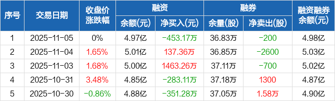 创业慧康:融资净偿还453.17万元,融资余额4.97亿元(11-05)