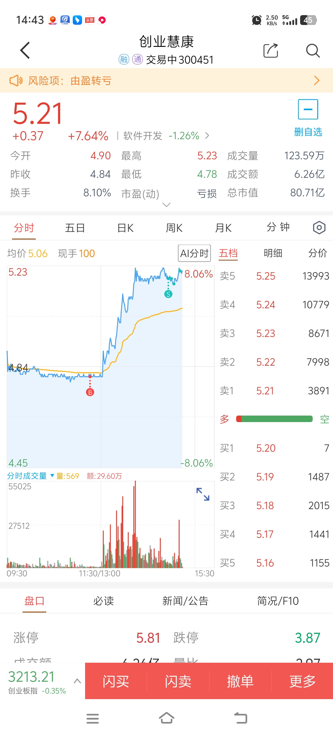 $创业慧康(SZ300451)$ 去了一半多,周末踏实睡大觉
