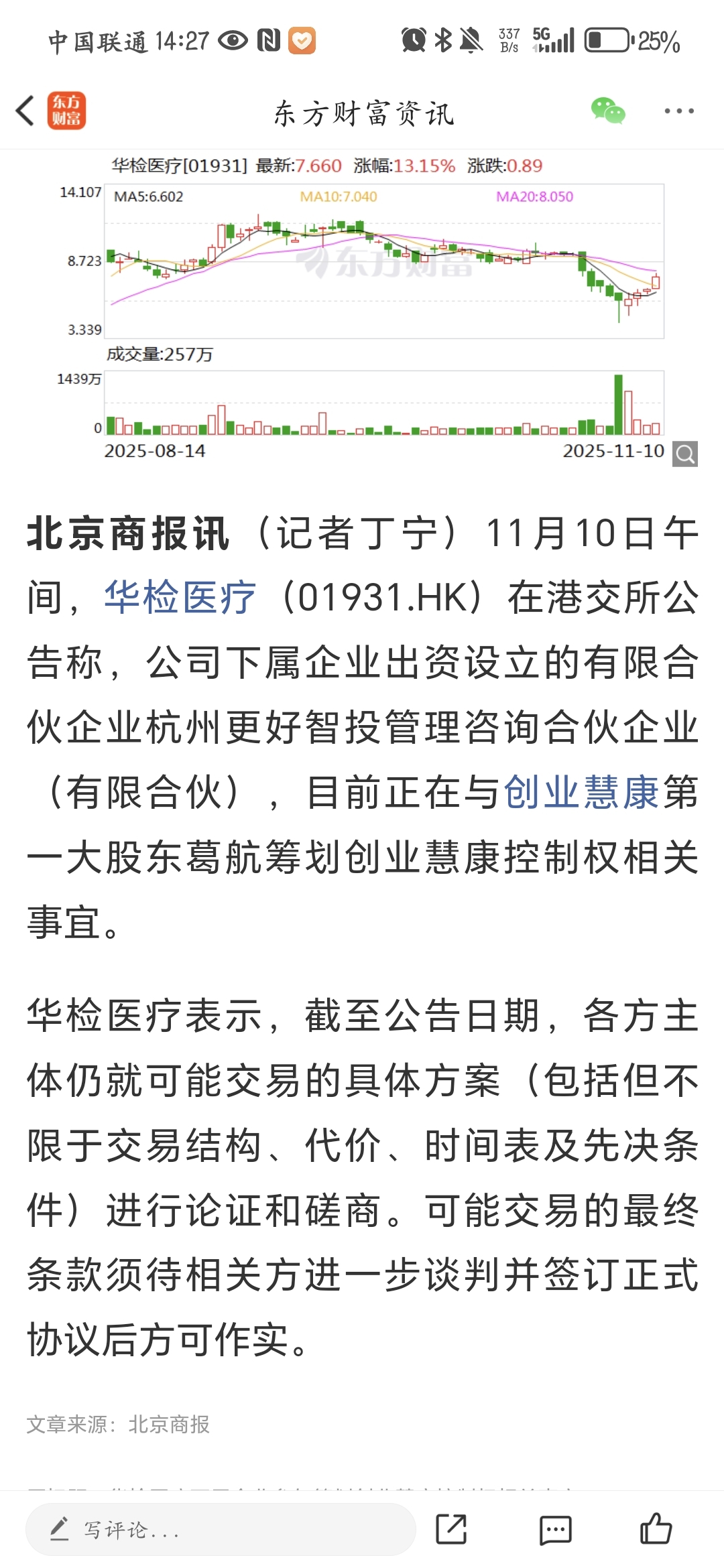 $创业慧康(SZ300451)$ 港股,华检医疗,收购创业慧康