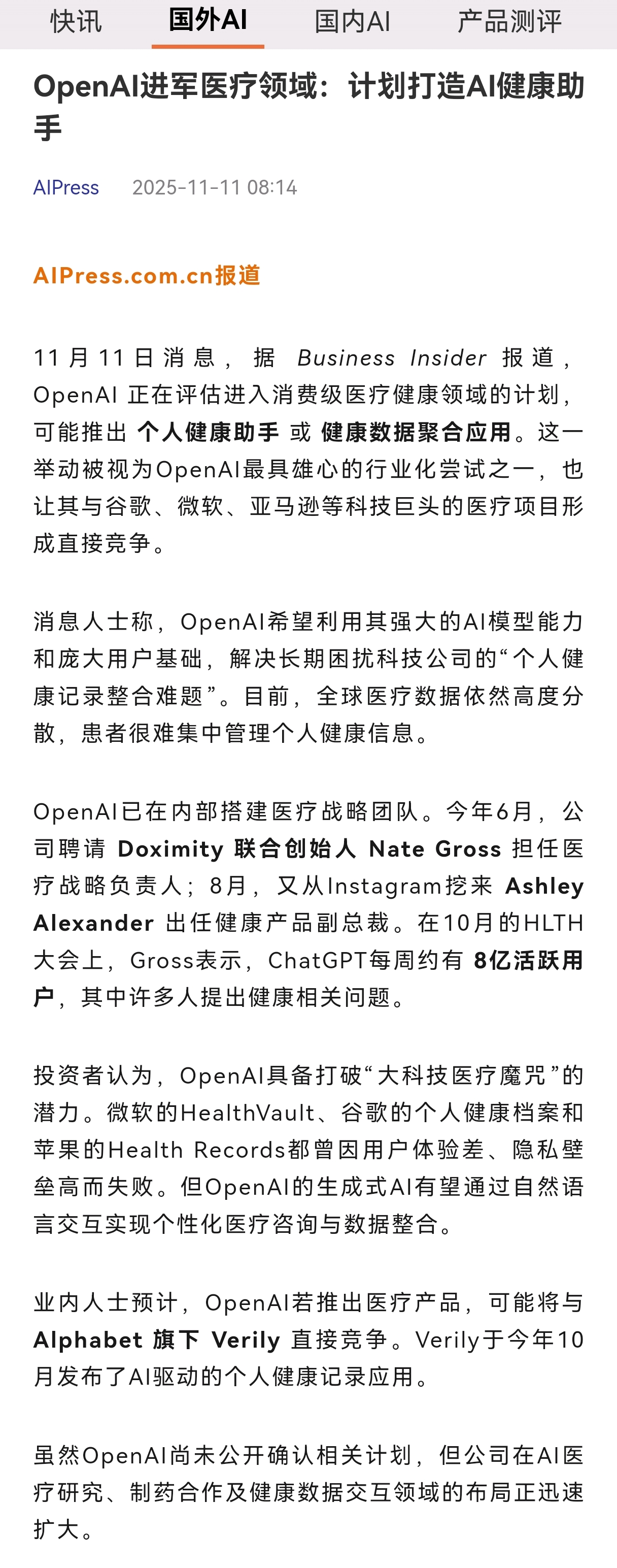 OpenAI进军医疗