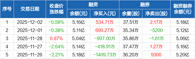 创业慧康:融资净买入534.71万元,融资余额5.16亿元(12-02)