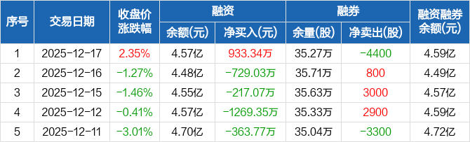 创业慧康:融资净买入933.34万元,融资余额4.57亿元(12-17)