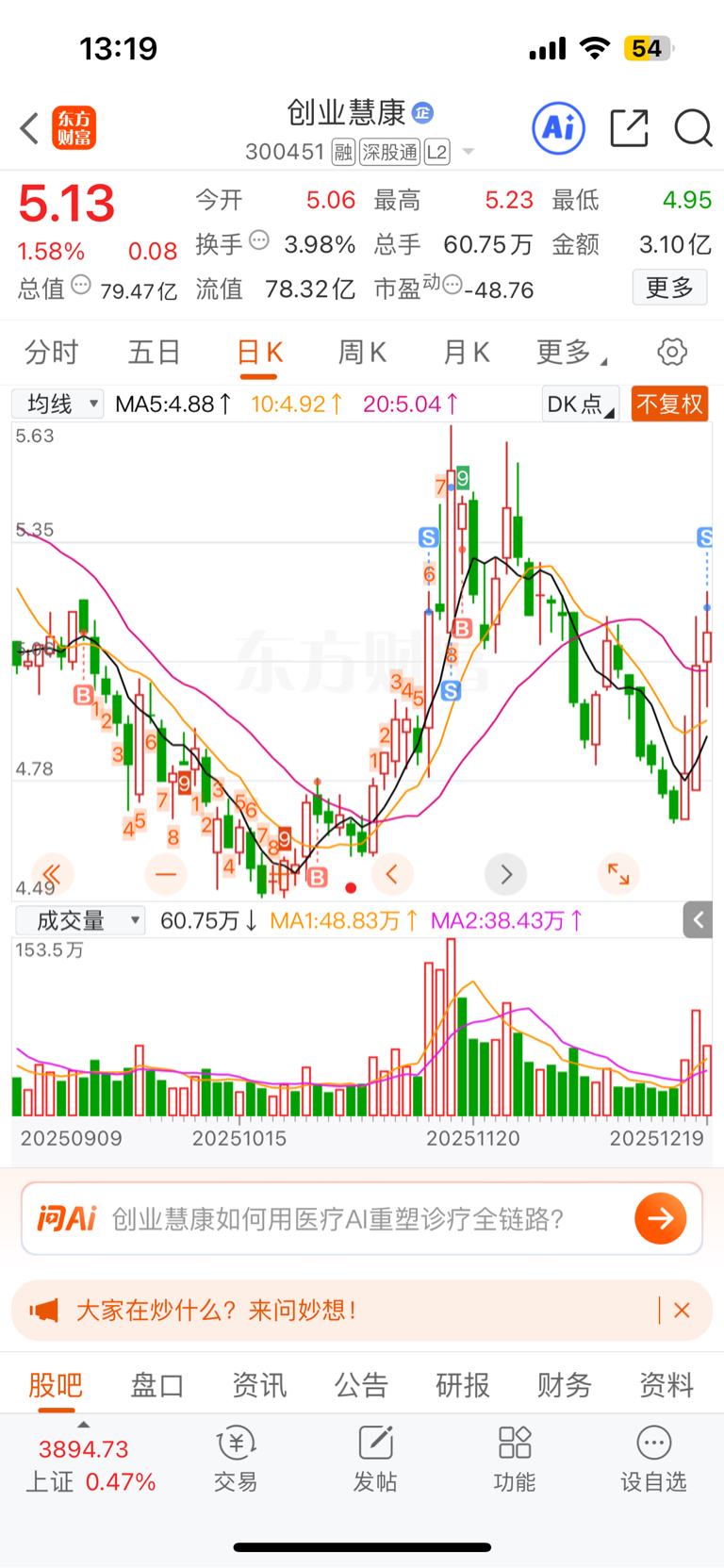 $创业慧康(SZ300451)$ 走了、浪费时间