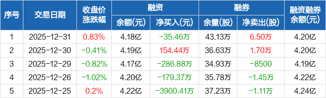 创业慧康:融资净偿还35.46万元,融资余额4.18亿元(12-31)