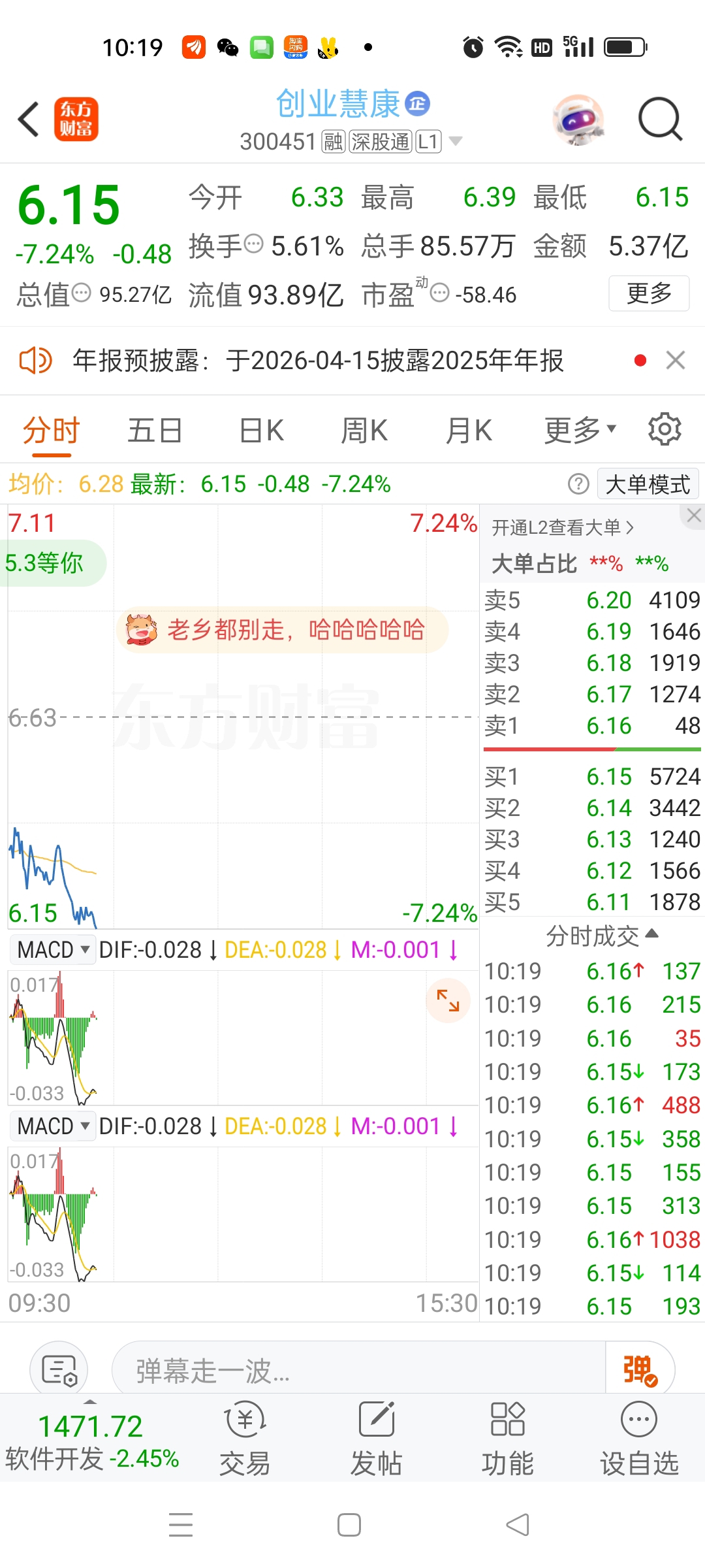 $创业慧康(SZ300451)$ 抄底了,兄弟们