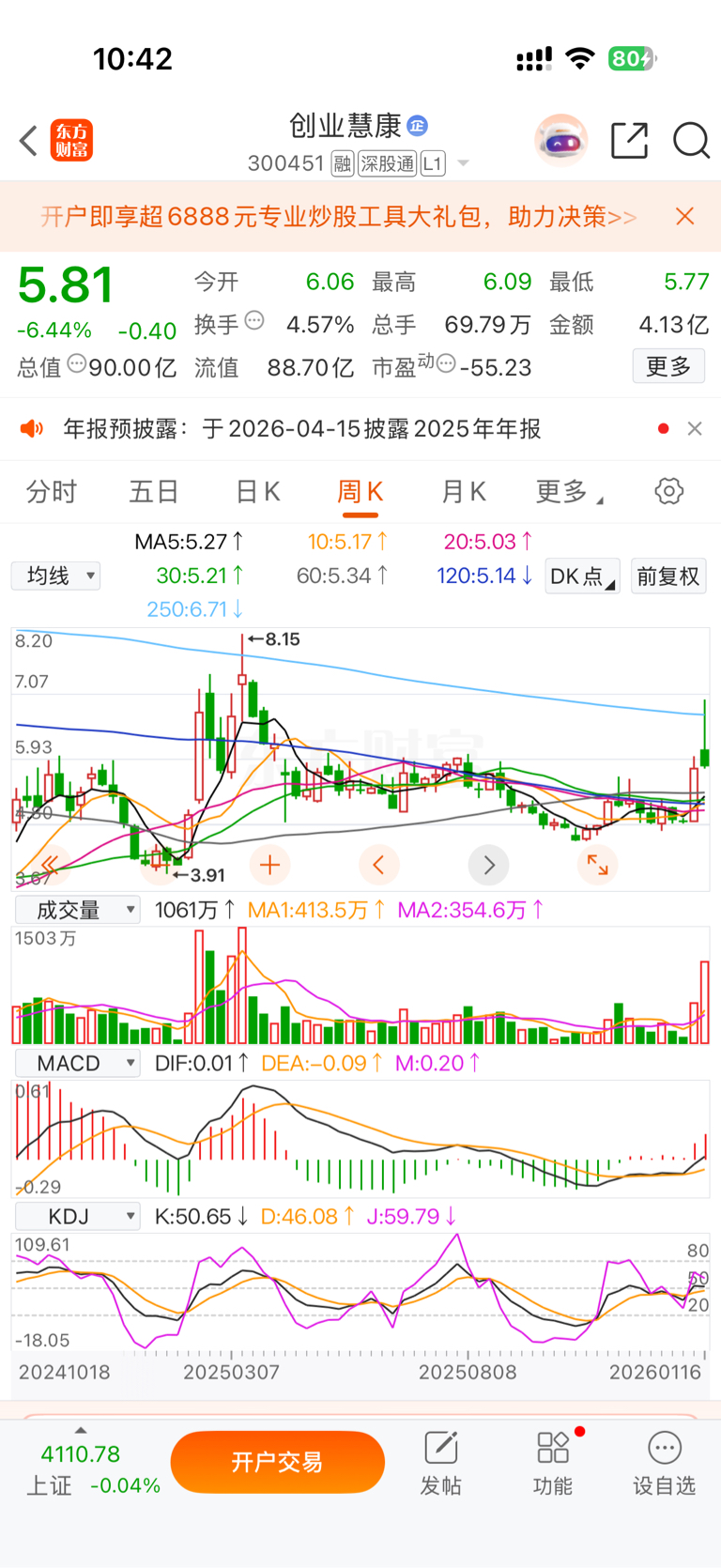 $创业慧康(SZ300451)$ 但没想到A杀 现在看看K线 一样的配方