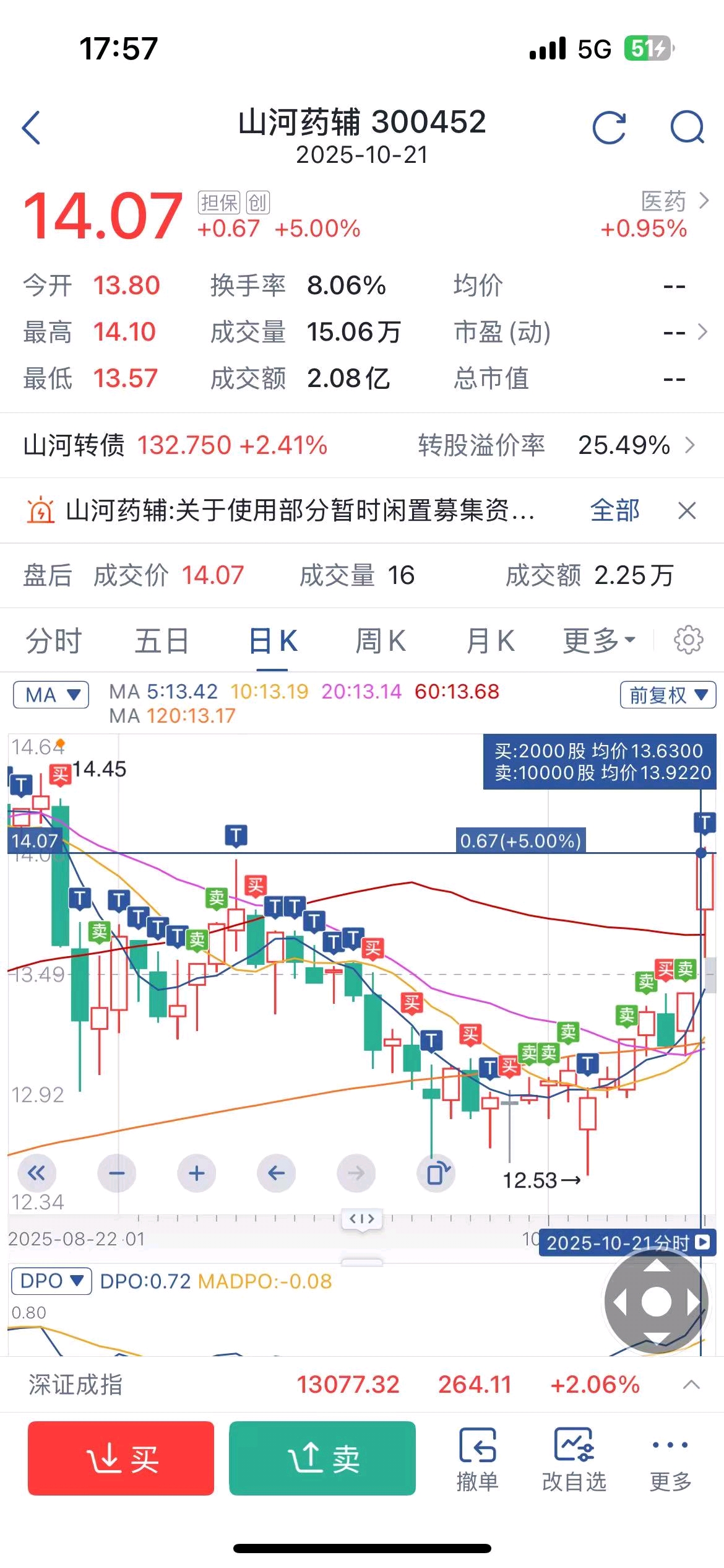 $山河药辅(SZ300452)$ 还有1万股做个底仓吧!太累了!