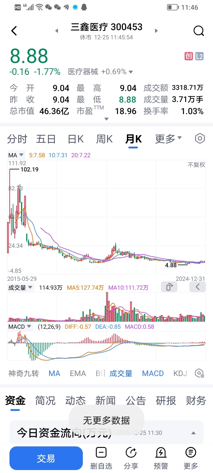 $三鑫医疗(SZ300453)$ 102块跌下的,买就是了………………