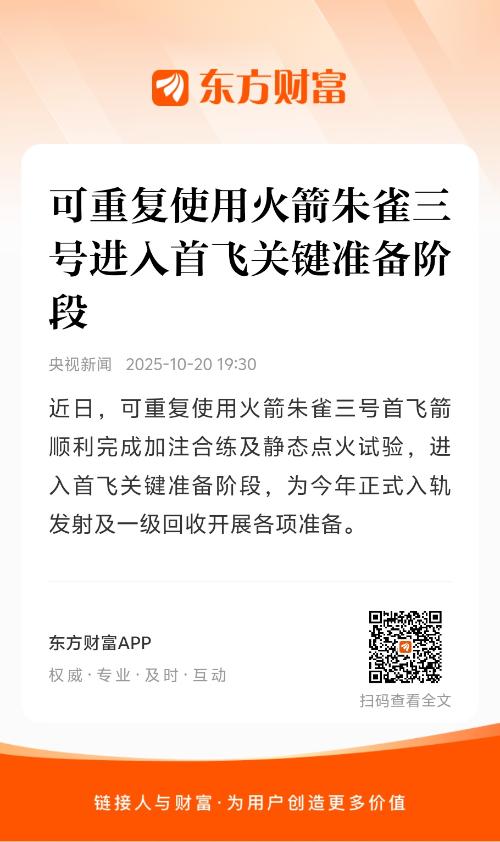 近日,可重复使用火箭朱雀三号首飞箭顺利完成加注合练及静态点火试验,进入首飞关键准备阶段,为今年正式入轨发射及一级回收开展各项准备。