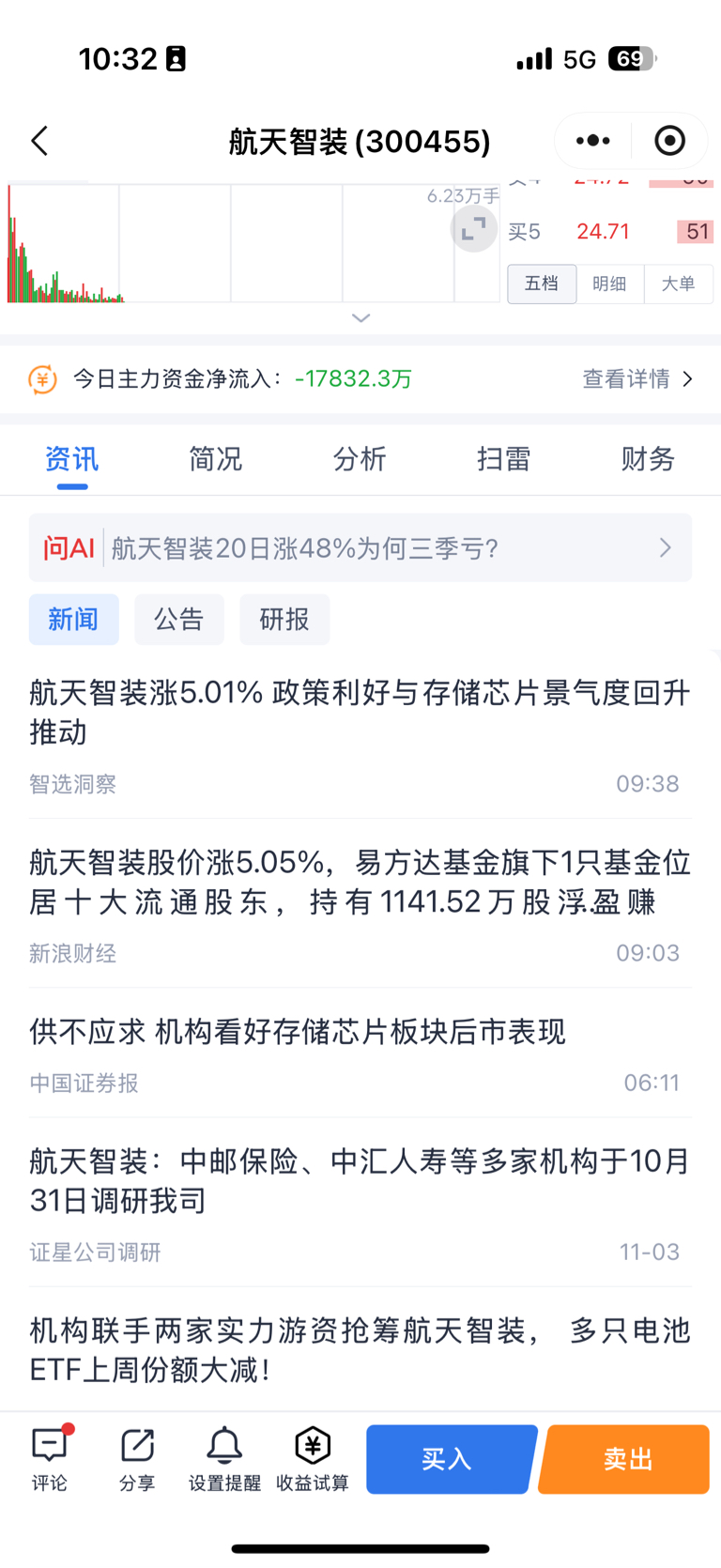 $航天智装(SZ300455)$ 千古不变的铁律,早盘发些子虚乌有的利好,就是出货
