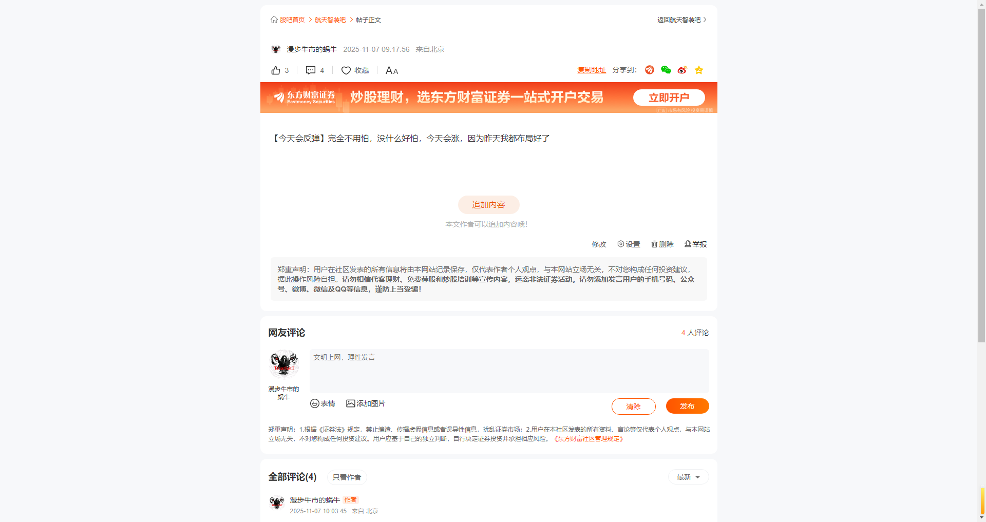 温馨提示: 1.根据《证券法》规定,禁止编造、传播虚假信息或者误导性信息,扰乱证券市场;2.用户在本社区发表的所有资料、言论等仅代表个人观点,与本网站立场无关,不对您构成任何投资建议。用户应基于自己的独立判断,自行决定证券投资并承担相应风险。《东方财富社区管理规定》