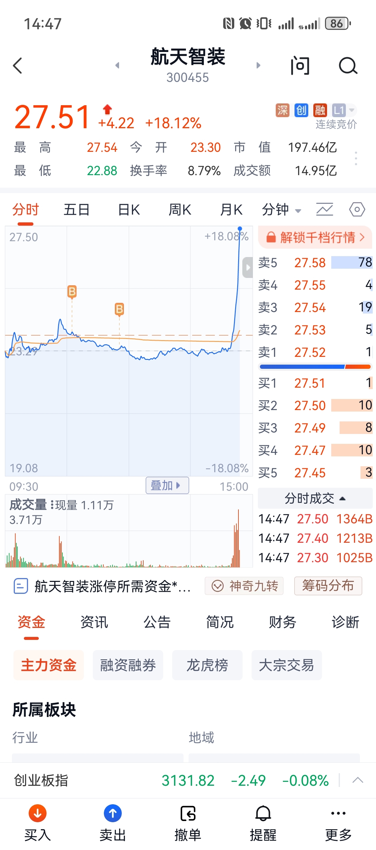 $航天智装(SZ300455)$ 发生了什么?本来被套的不要不要的