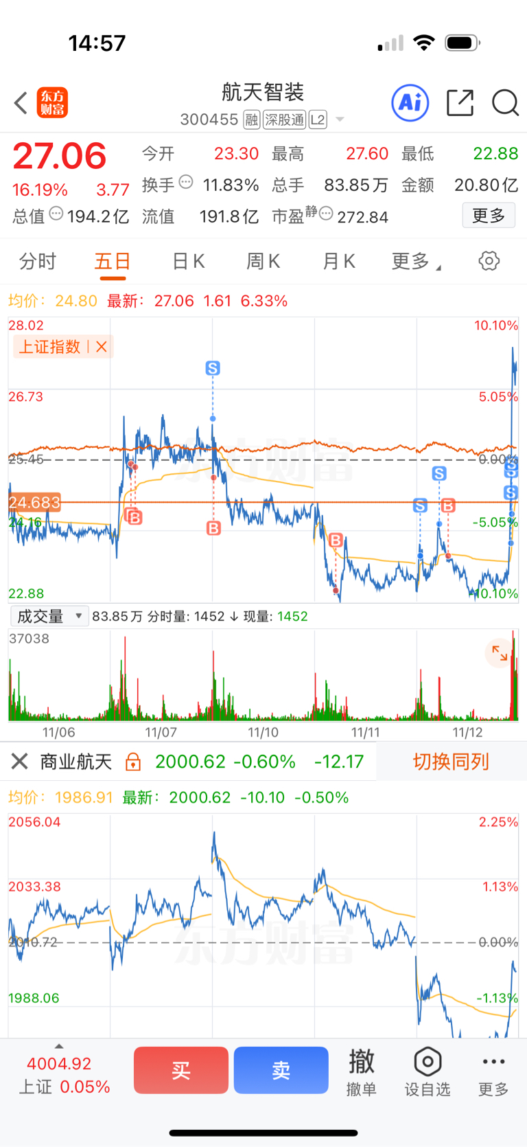 $航天智装(SZ300455)$ 真的吐血上周五买的,昨天气的打满全仓,今天平均才转了4个多点,就剩1成仓了