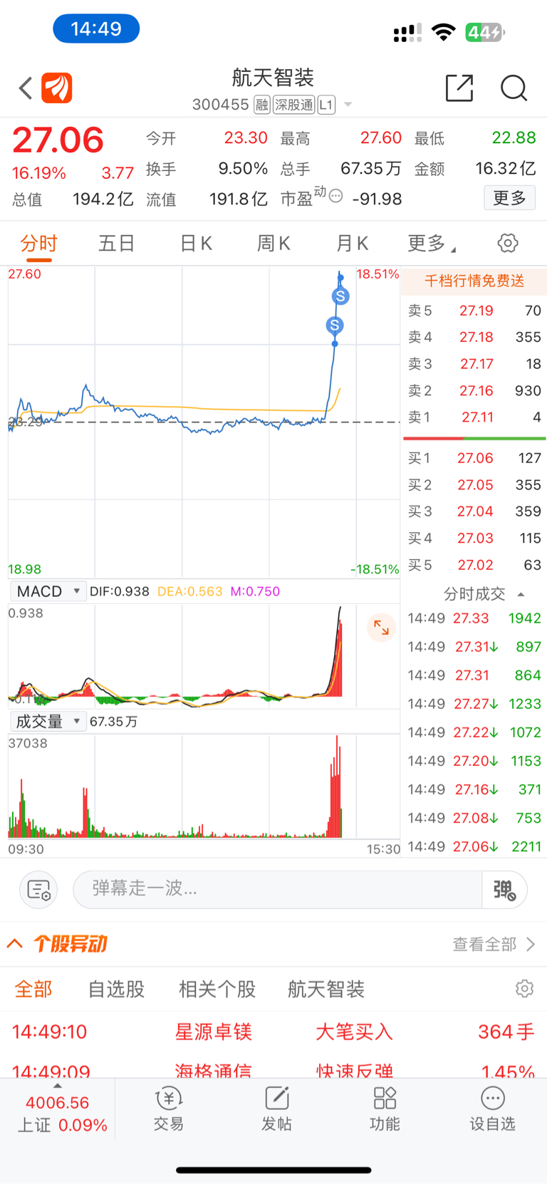 $航天智装(SZ300455)$ 高低切换,希望明天还能再挣点吧
