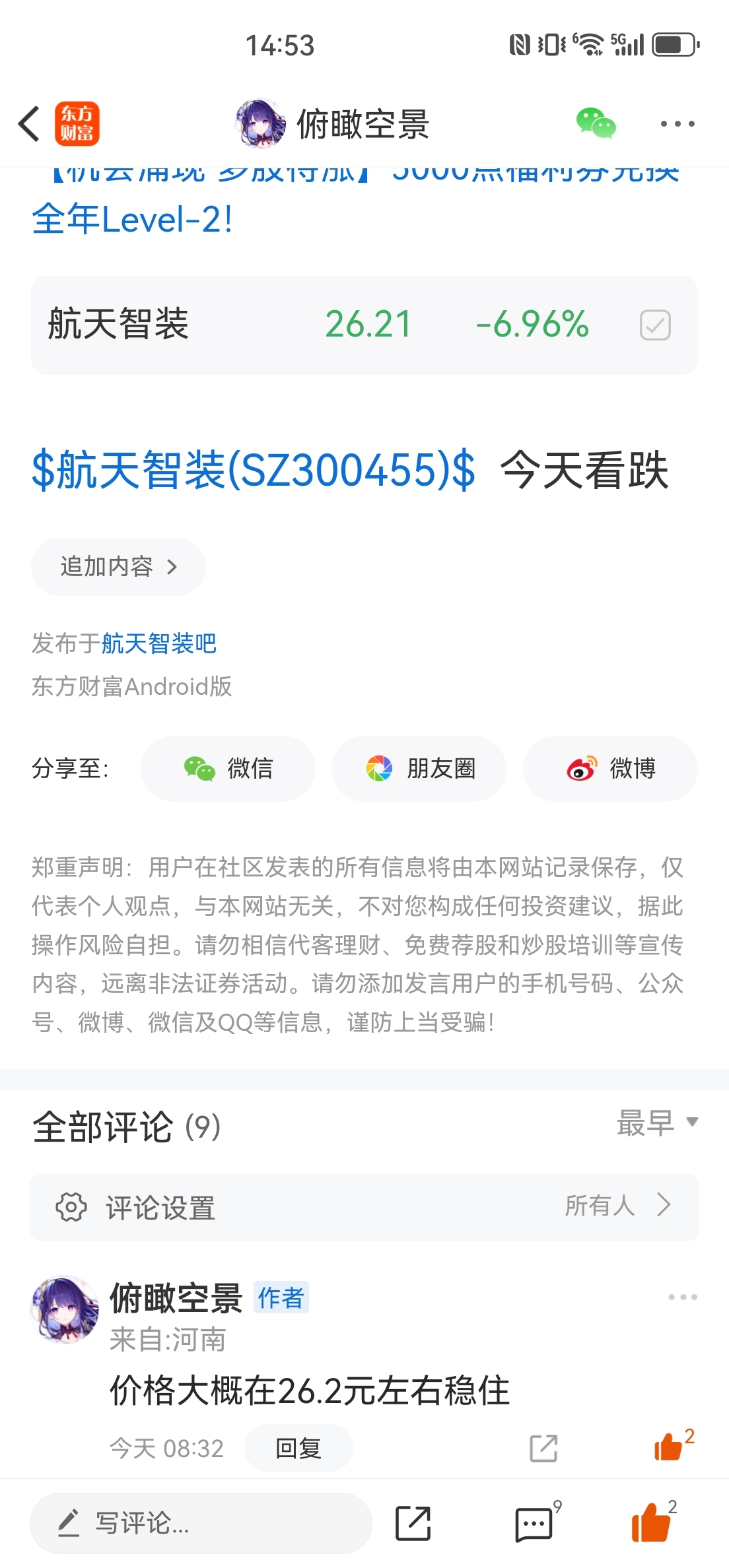 $航天智装(SZ300455)$ 就问你们准不准?还喷我么???想知道明天怎么走么?价格我还能给你按出来