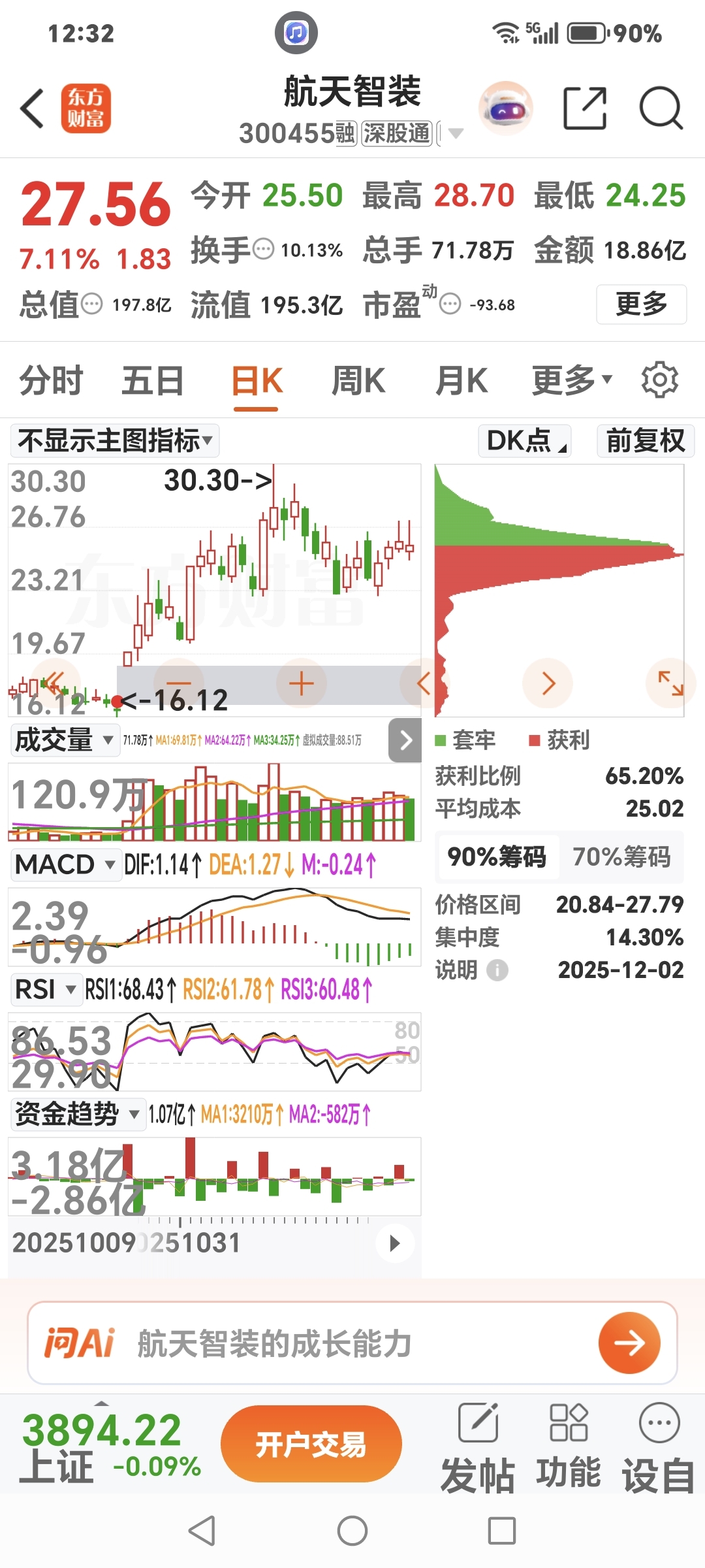$航天智装(SZ300455)$ 目前可以确定的是很多散户提前进了商业航天潜伏,有看到前几天发文买入的,有看到商业航天司买入的,还有很多搏29日朱雀3发射买入的,目前市场看一看涨的好的从不靠文件利好驱动,散户都看好的往往就是涨不动,谁来给你抬轿子?星期五本来商业航天高开低走,下午是航天发展带动,很多人也跟着追进了商业航天,但是航天发展其实是跟的福建板块,目前涨幅很大,福建板块在出货阶段随时调整,还有部分搏朱雀3昨天发射的资金潜伏进来。