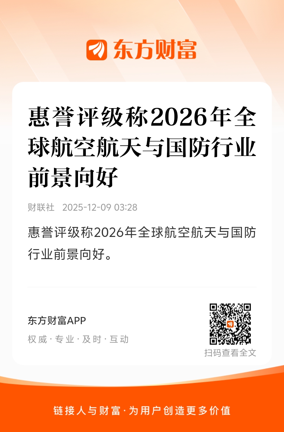 惠誉评级称2026年全球航空航天与国防行业前景向好。