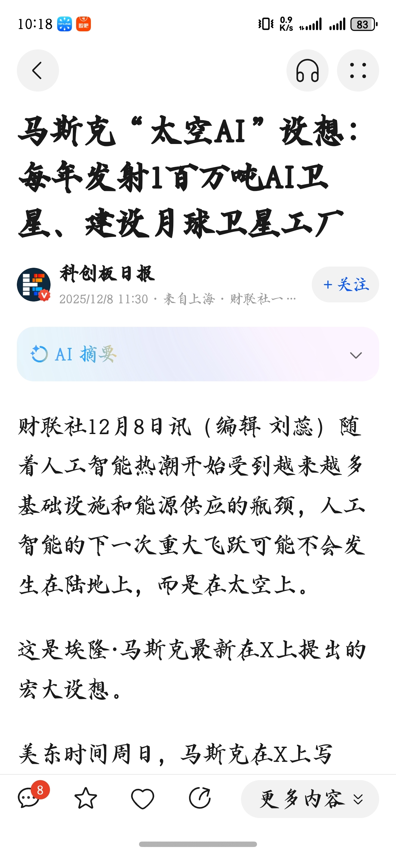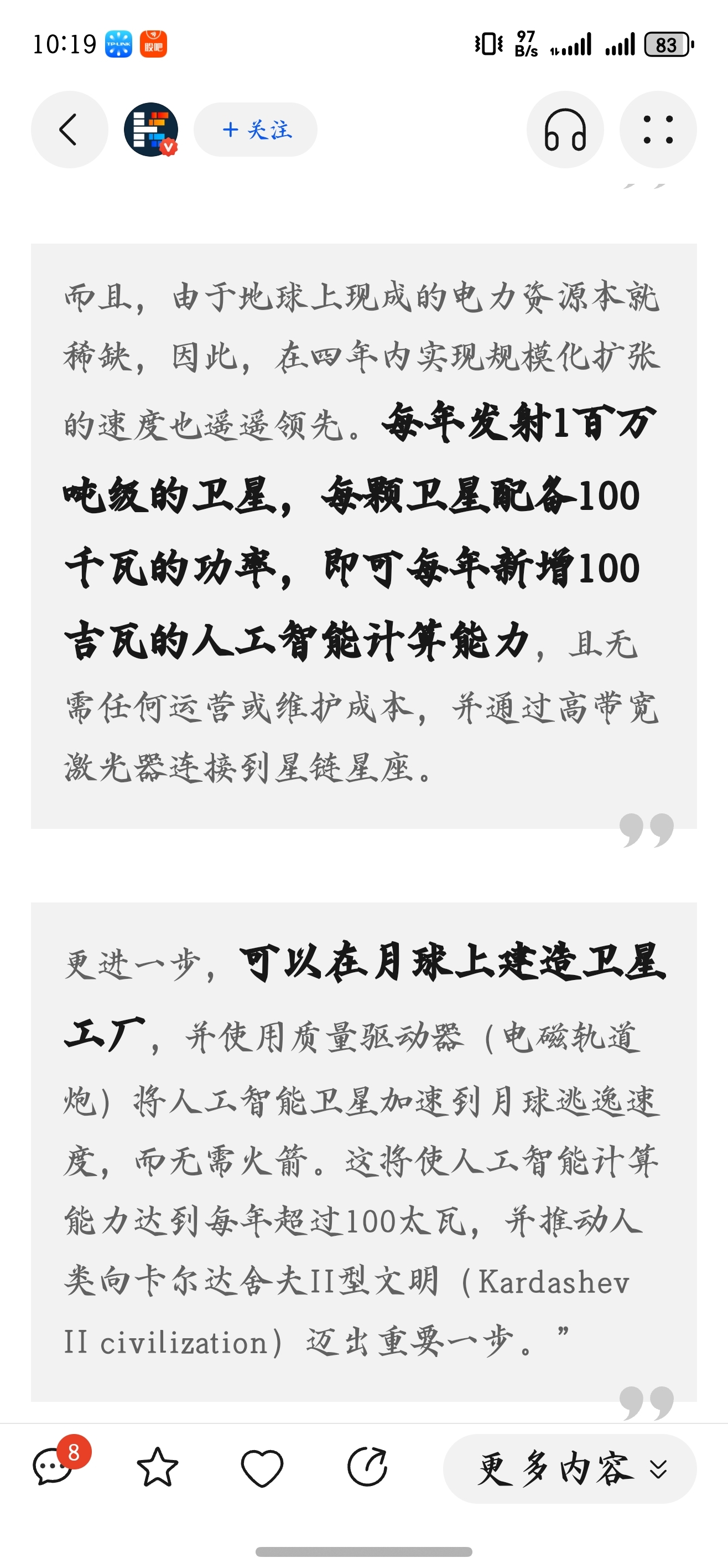 马斯克这个构想,重点就是算力和太空智能工厂,智装的空间站+智能机器人,打开想象空