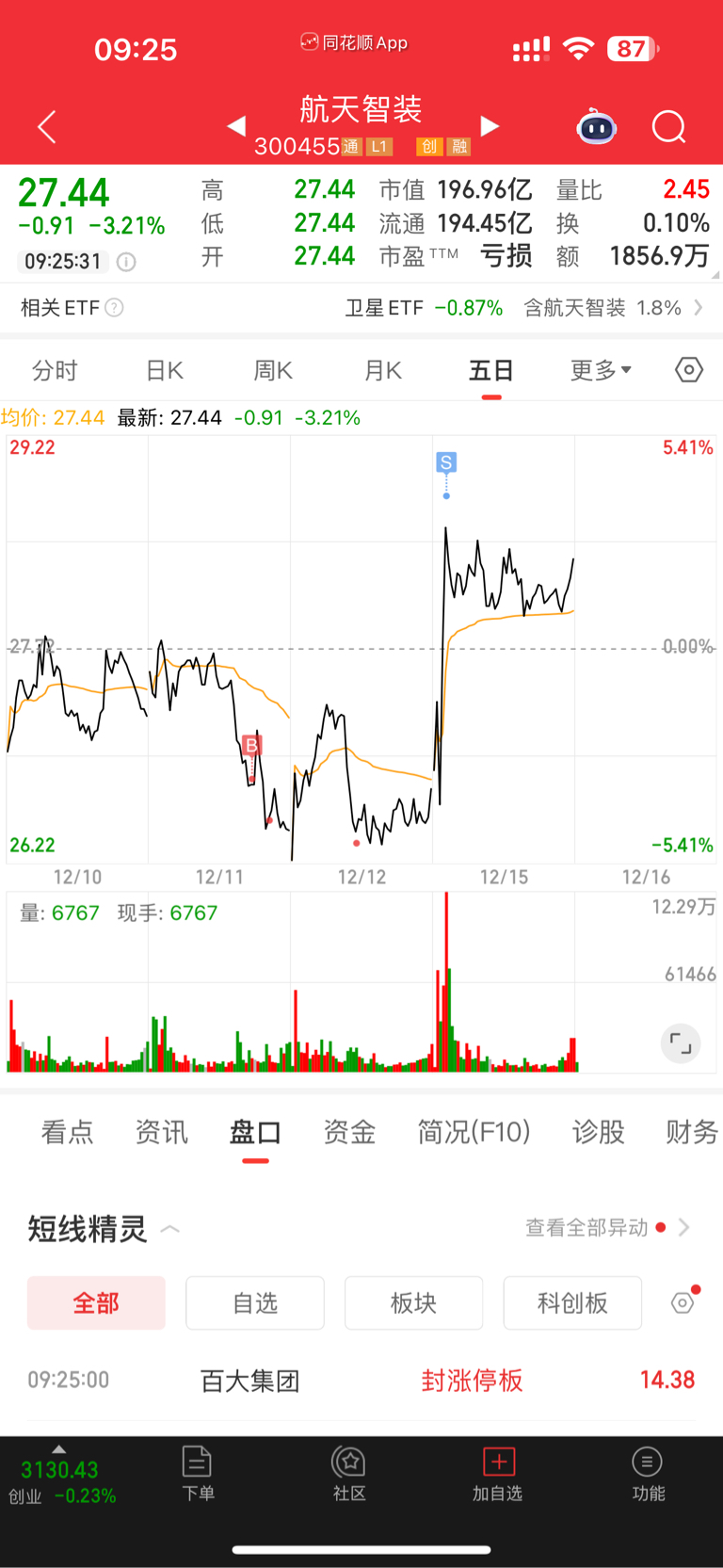 $航天智装(SZ300455)$ 还好,昨天跑了