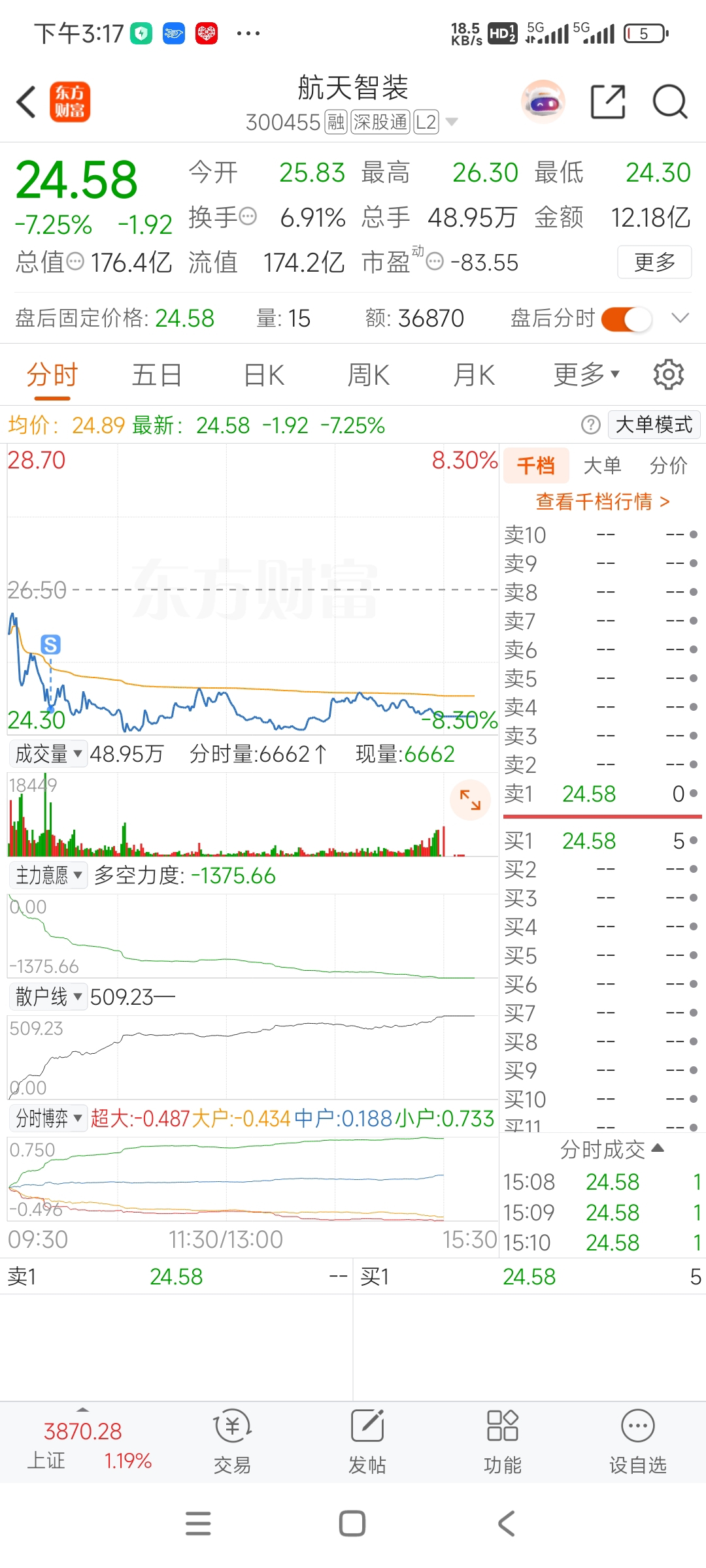 $航天智装(SZ300455)$ 我不在乎明天涨多少,我割了,你随意