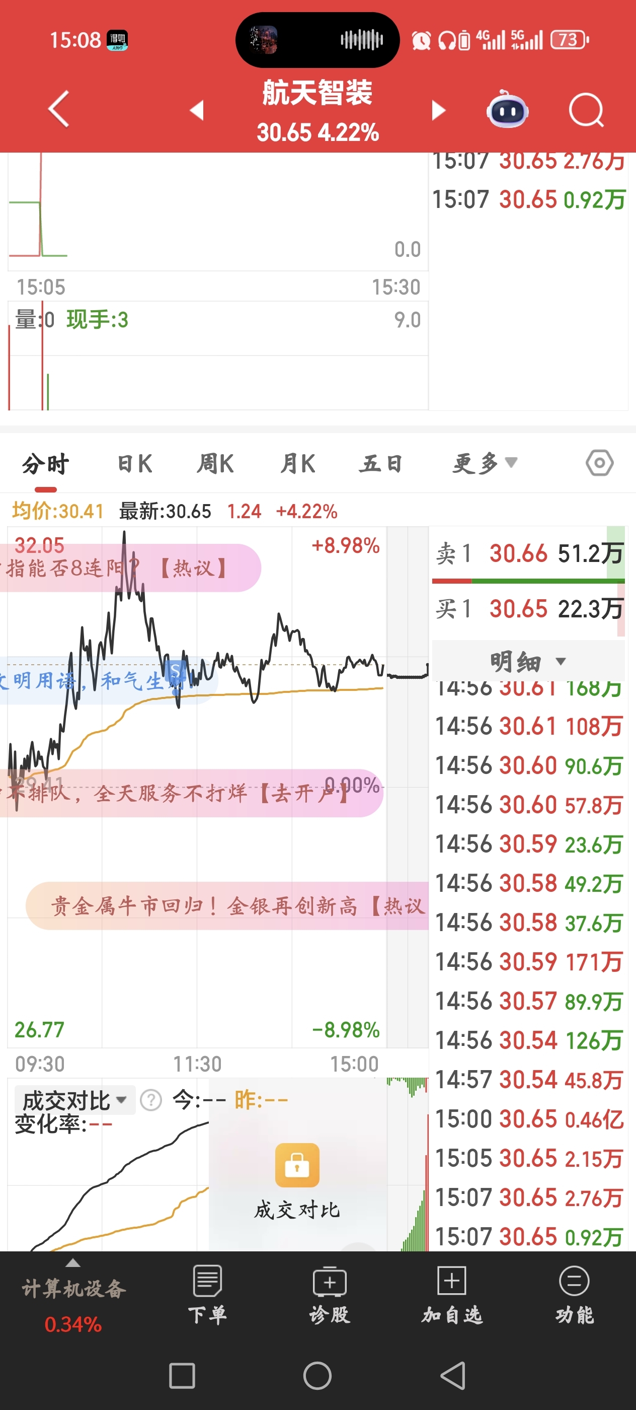 $航天智装(SZ300455)$ 早上九个点没卖,中午一波下杀,吓得跑出来了