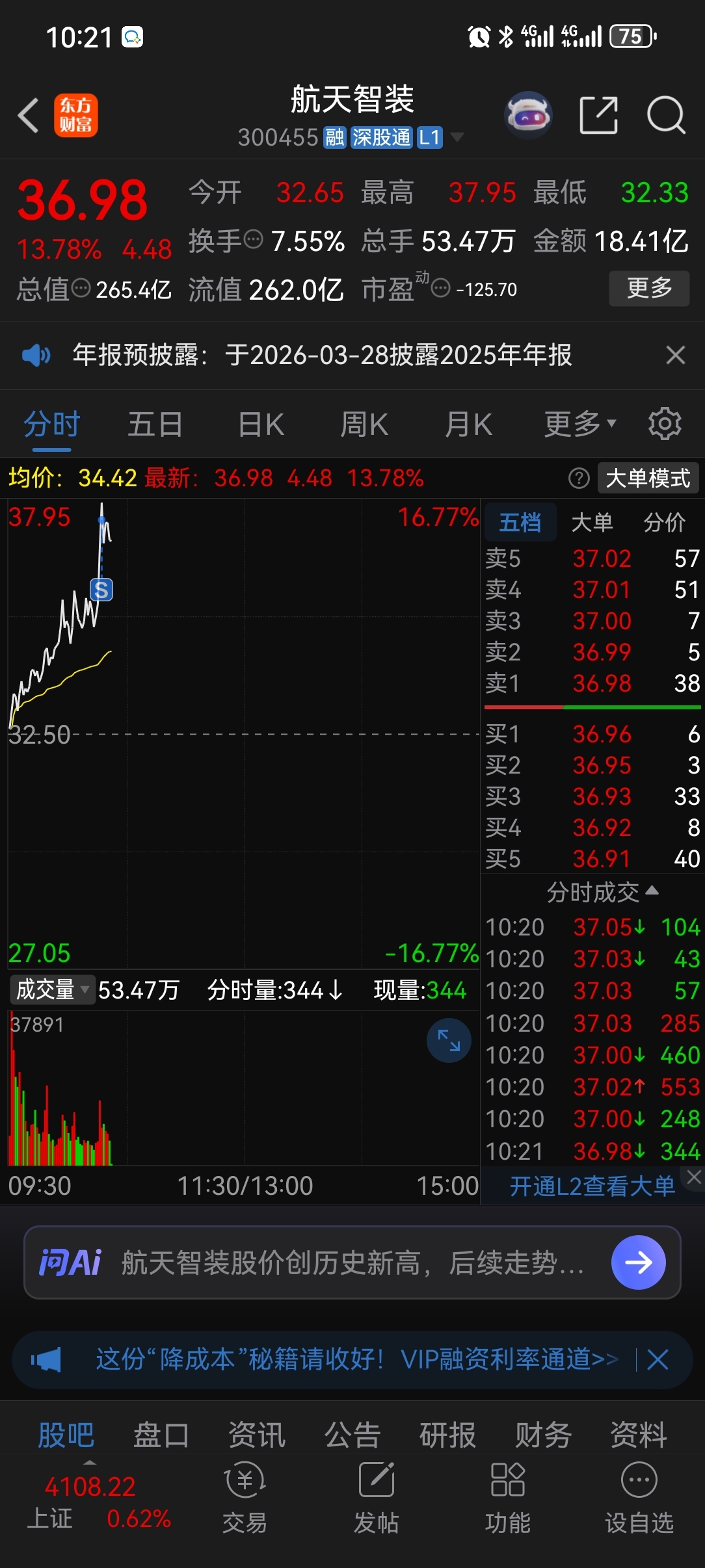 $航天智装(SZ300455)$ 我感觉我卖飞了,兄弟们冲
