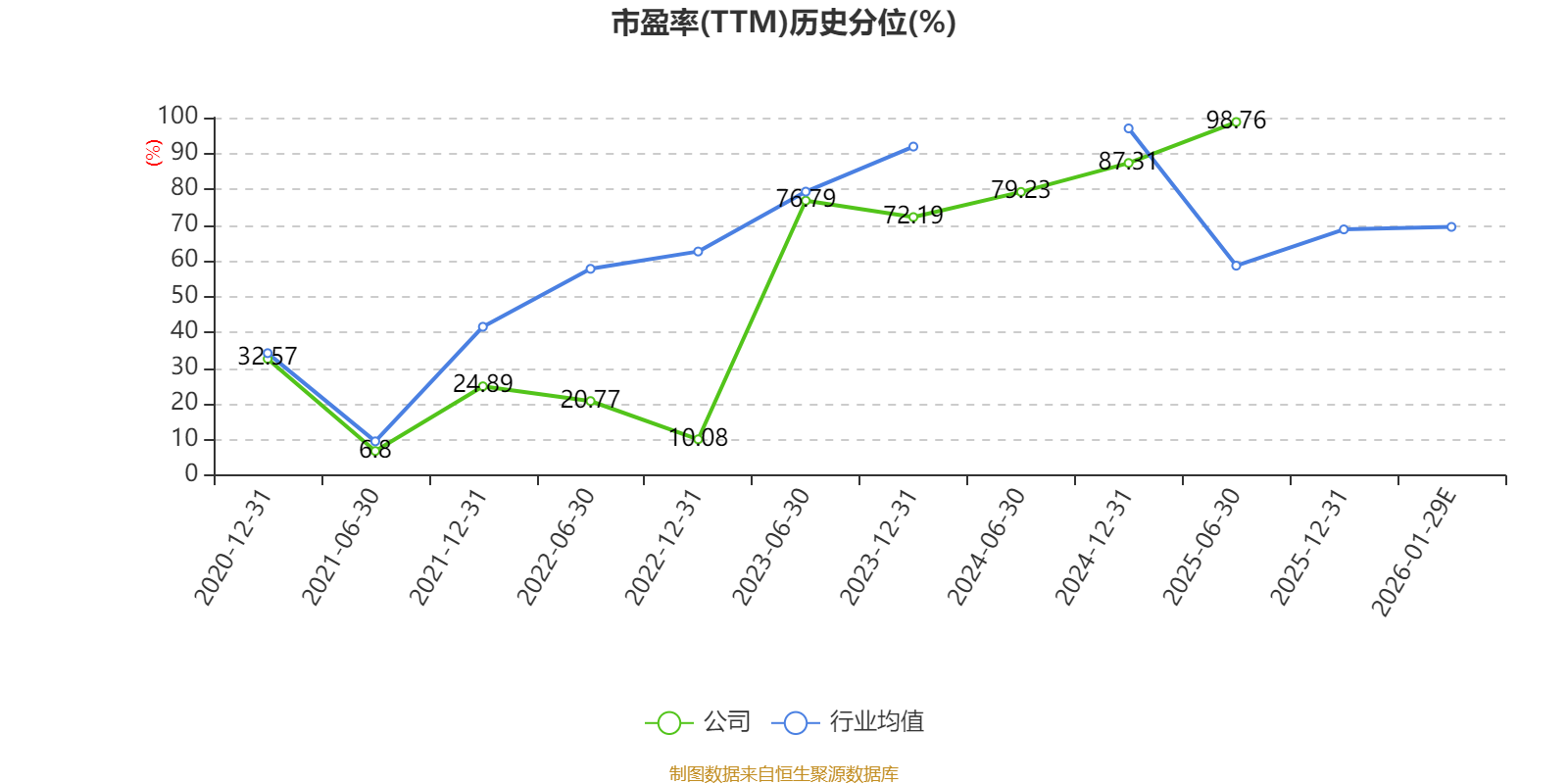 以本次披露业绩预告均值计算,公司近年市盈率(TTM)图如下所示: