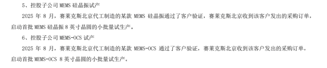 赛微电子的 MEMS 硅晶振是国内唯一实现高端突破的本土产品,技术性能对标国际龙头,占据国内高可靠性场景的主导地位。国内市场正以年 15% 以上的速度增长,2025年达21亿元,赛微电子凭借量产先发优势、客户资源和产能储备,有望在3年内成为国内 MEMS 振荡器的绝对龙头(市占率超30%),并深度受益于 AI、5G、智能汽车的浪潮。