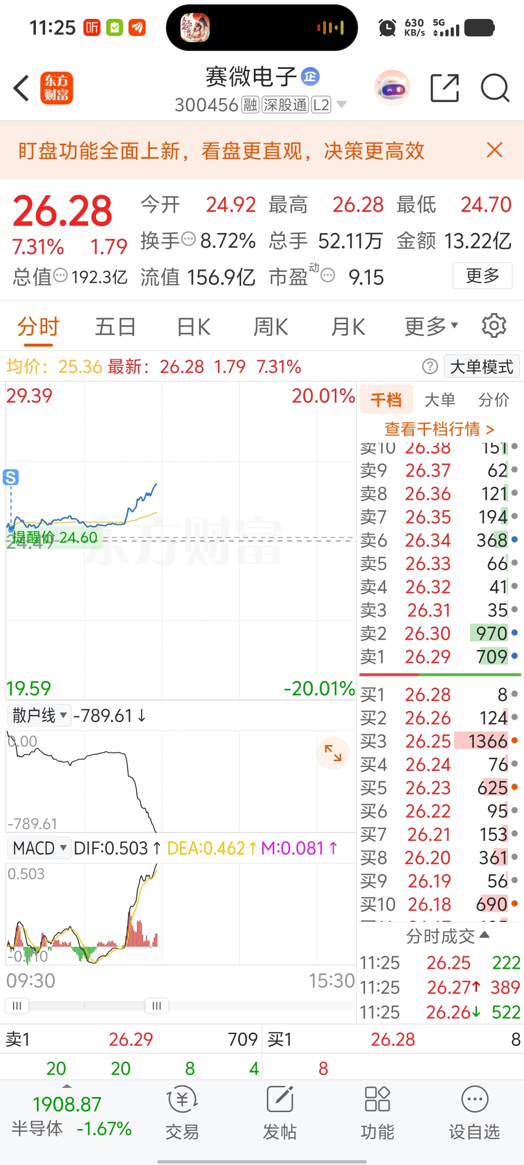 $赛微电子(SZ300456)$ 妥妥的韭菜,看半导体板块回调开盘清仓了。