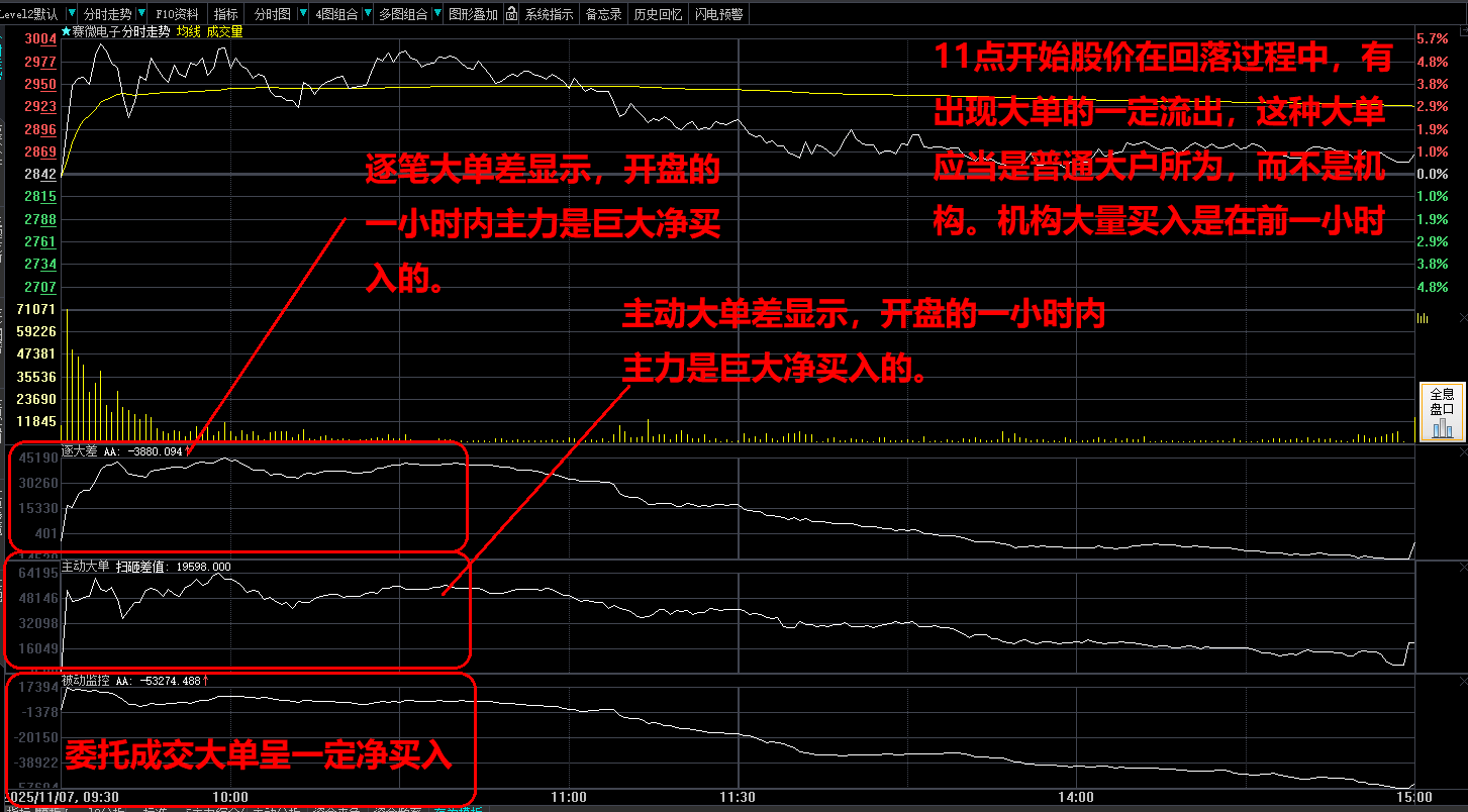 赛微电子周五全天动态主力数据图(三类数据),供各位大佬研究。