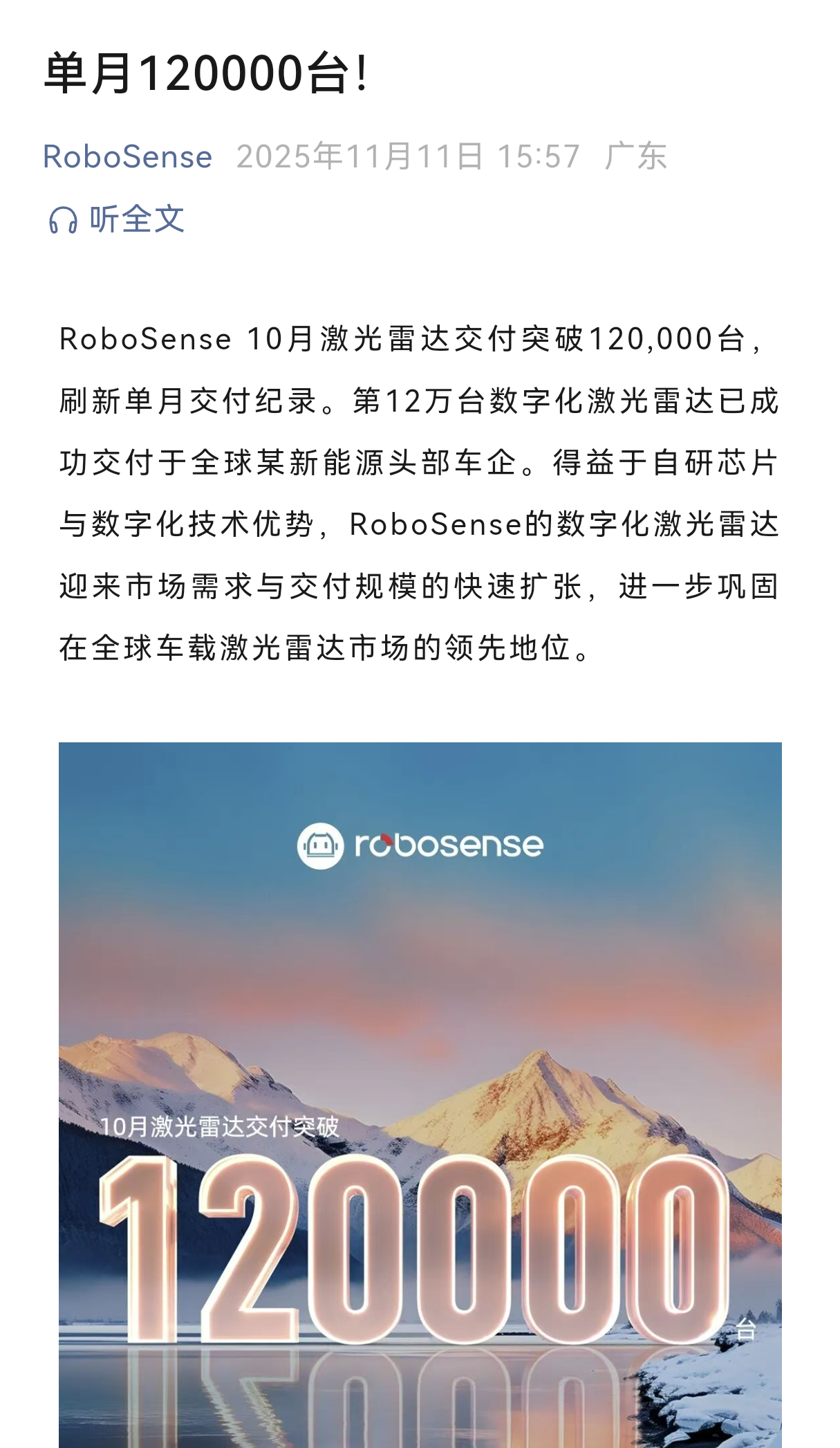 单月激光雷达交付创新高