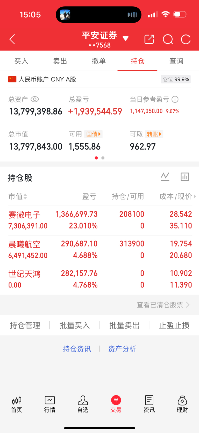 大家下午好!实盘记录赛微电子做了T世纪天鸿下午拉伸清了下午开仓晨曦航空动动你们发