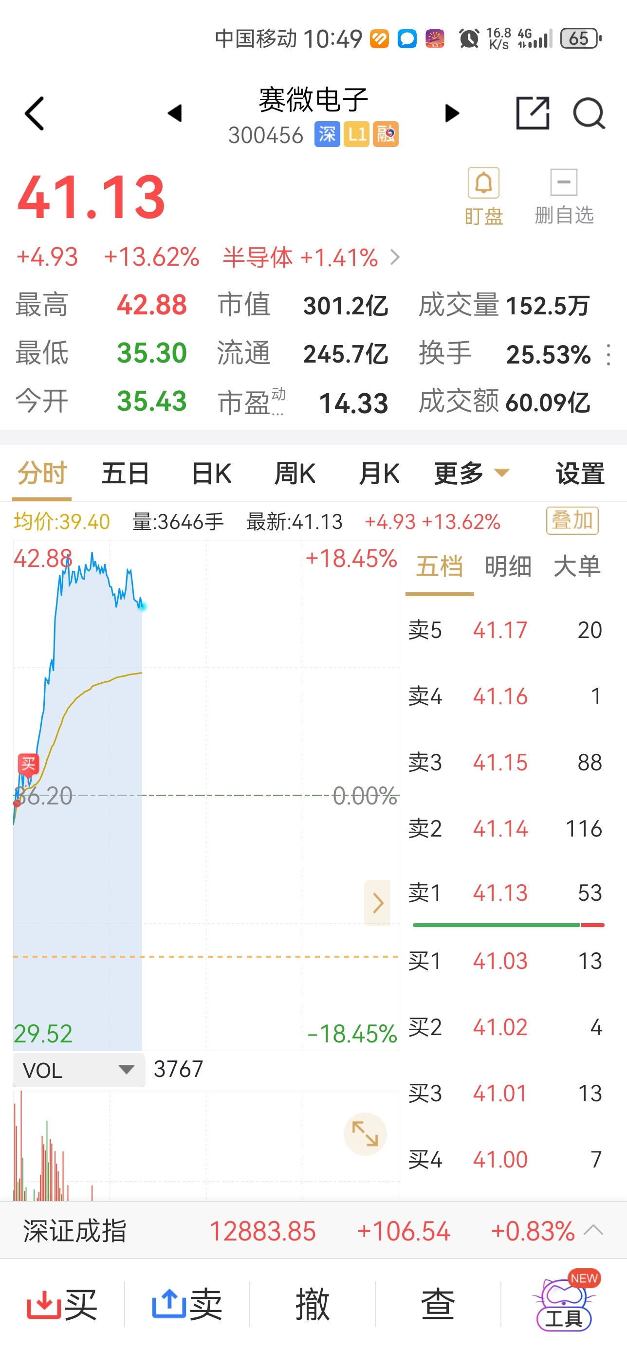 $赛微电子(SZ300456)$ 昨天37.81卖今天36.45重新买回来。一个字爽。老板慢慢洗。