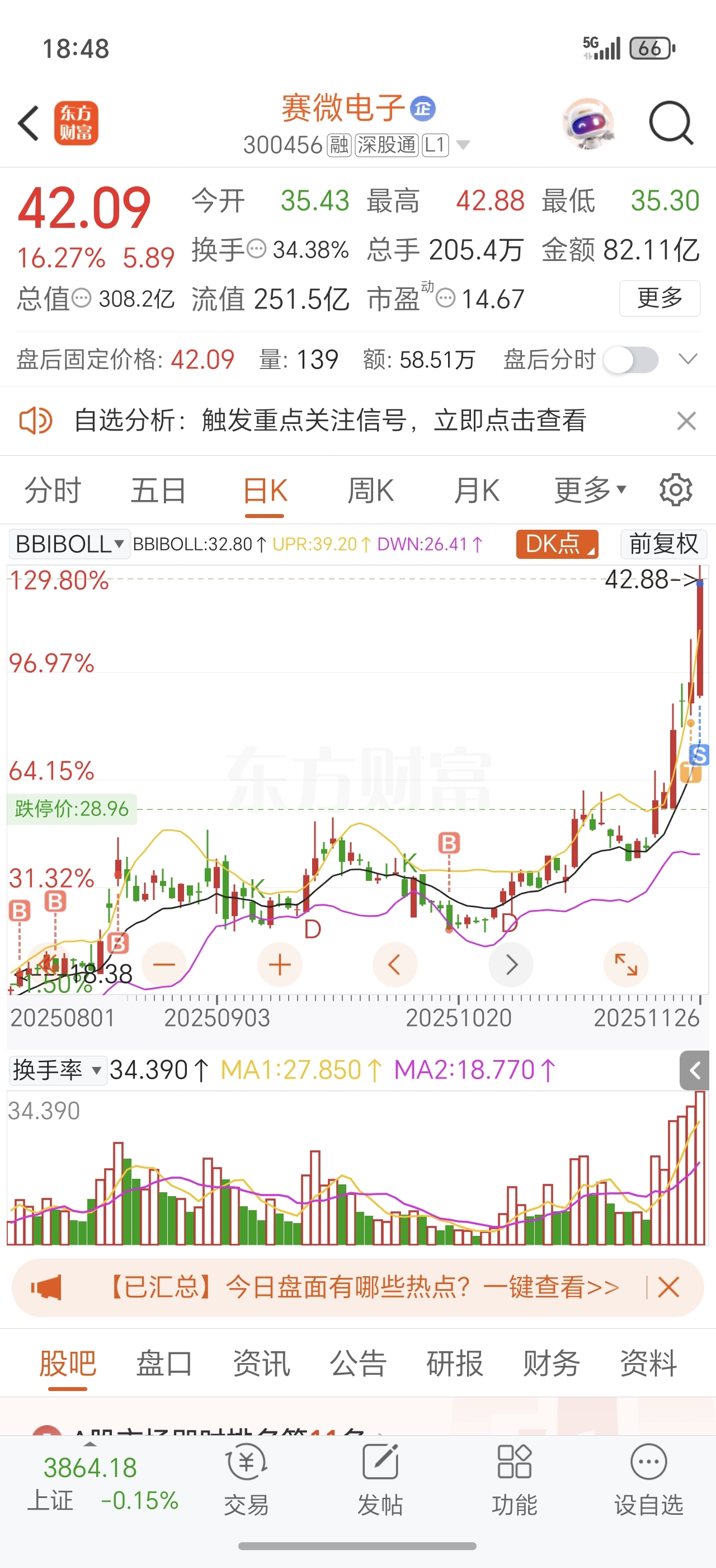 $赛微电子(怎么没有回调了天天没T今天一做就赶出去了不自在比赔钱还难受SZ300