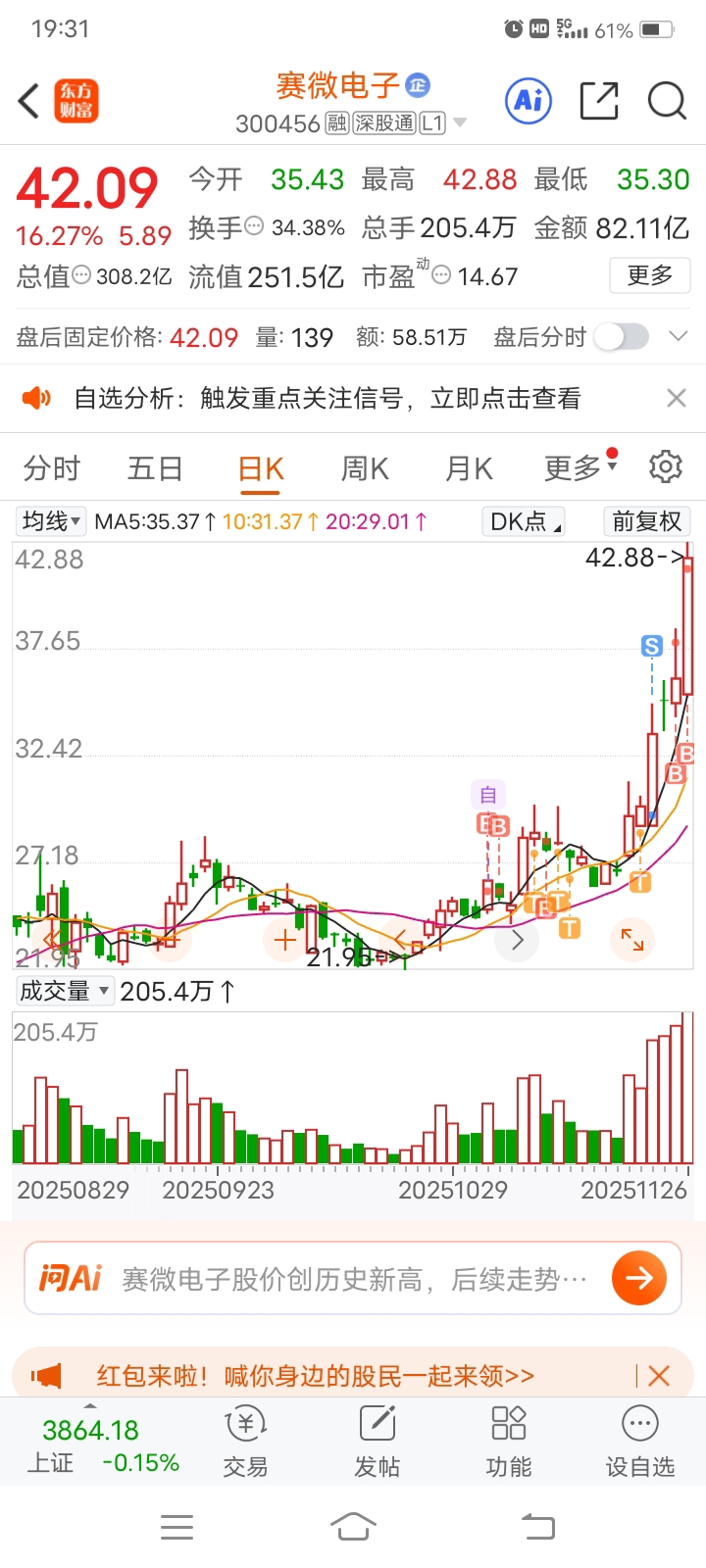 $赛微电子(SZ300456)$ 一鼓作气,都不回调让你上车,车下的伙伴一定很急,我也是,卖在最低点,今天高点接了回来。