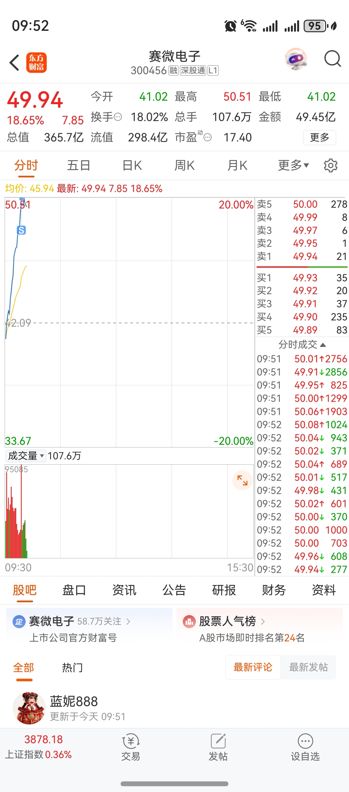 $赛微电子(SZ300456)$ 不封板先出来了留下来的发财