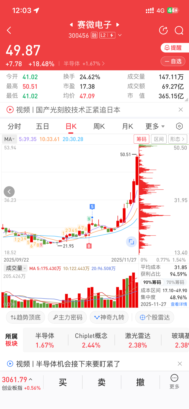 $赛微电子(SZ300456)$ 看你们赚钱我来气!我曾经短线在塞微赚了13个点跑了,后来回调没破山根我居然把他给忘了。今天无意中一看,马德翻倍了。气气气!