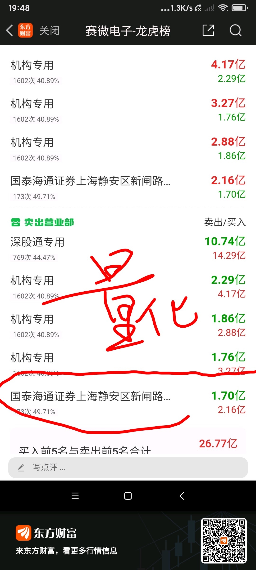 $赛微电子(SZ300456)$ 大家注意了,今天有“量化”资金大量买入了,明天大概率会大幅低开杀跌,又是准备“割韭菜”了。